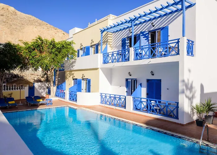Este hotel está a 30 metros de Mar Egeo en Kamári. Entre los lugares de interés natural de la zona se encuentran la Playa de Monolitos, a 4 km del hotel Karidis, y una playa a unos 5 minutos en coche. Los huéspedes pueden preferir explorar los lugares de interés de la zona, ya que esta propiedad está adornado por restaurantes y cafeterías. El Parque Acuático Santorini también está a 2,1 km. El Karidis Hotel está a unos minutos a pie de de la estación de autobuses Kamari beach.